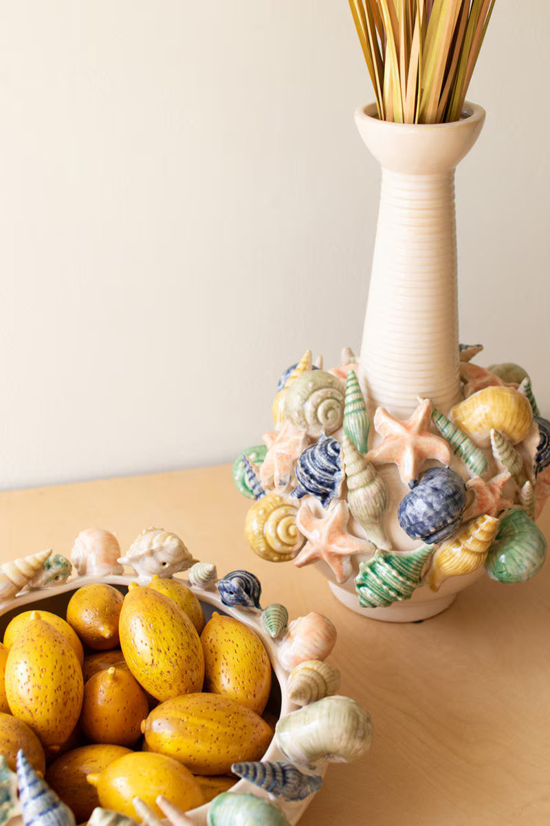 Ceramic bottle neck vase with a matching bowl option, grooves with all the coastal vibes, both neutral and colorful.
