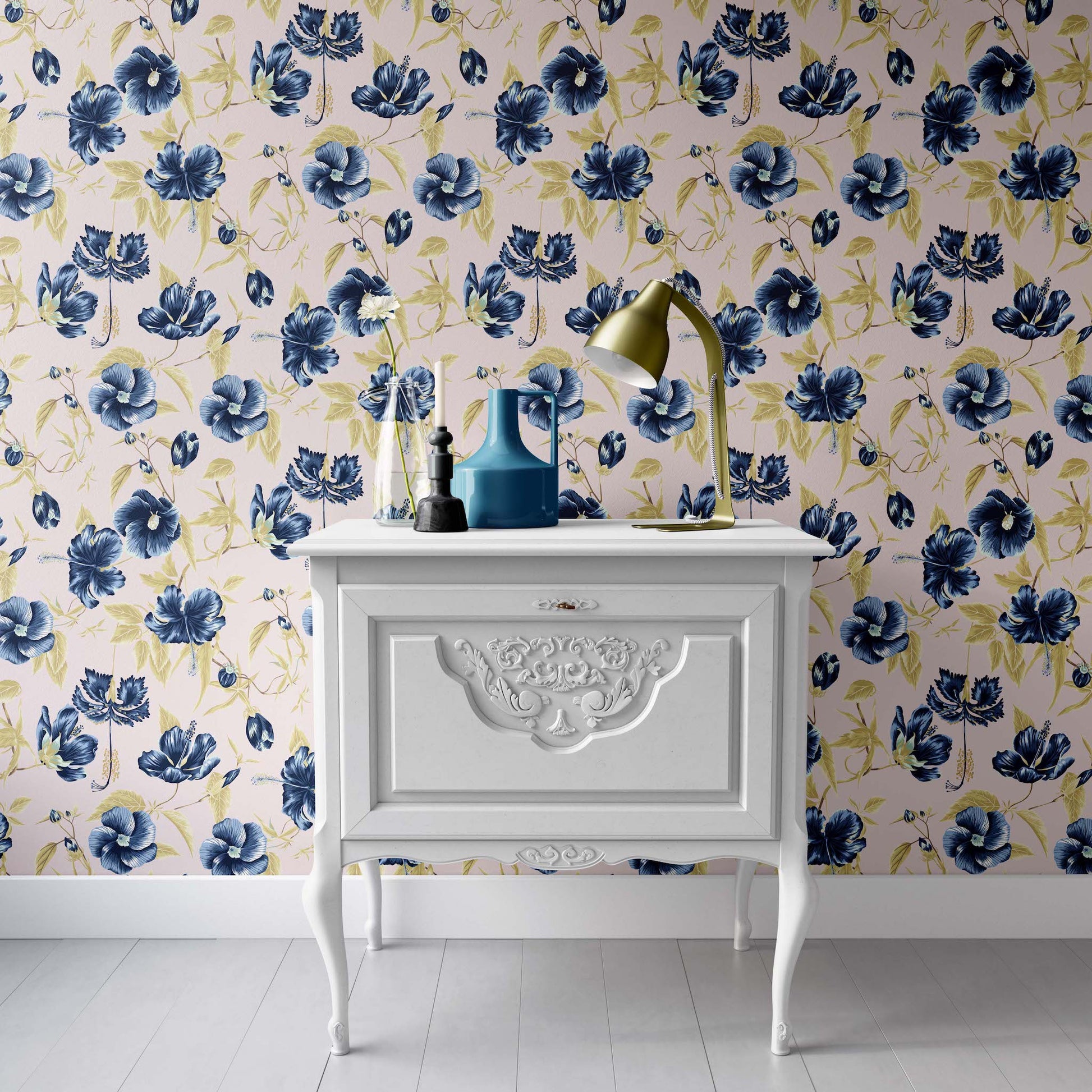 Pattern Description: Elevate your space with this elegant navy blue Hawaiian hibiscus floral wallpaper. The gold leaf detail scales this wallpaper to a high-end luxury pattern we all love. This traditional tropical beauty has style and class. Wallpaper is one of the most popular ways to transform a space without a major commitment. Our wallpapers are crafted to enhance the texture and style of your space.
