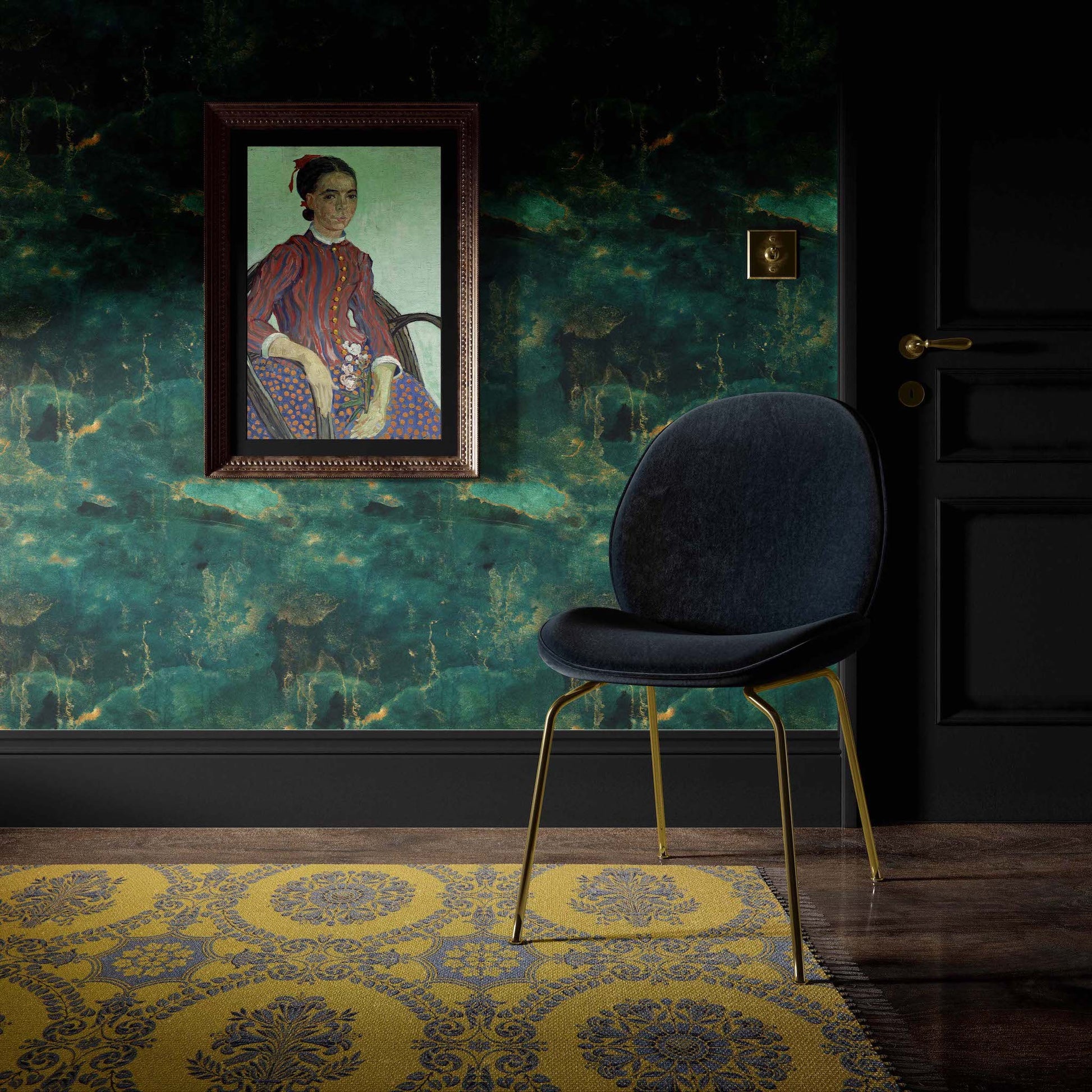 Wrap your room in this beautiful deep emerald green and gold marble-like wallpaper. This wallpaper features currently trending green shades done in watercolor. A sophisticated and popular wallpaper that would be great for any room. Wallpaper is one of the most popular ways to transform your room without a huge commitment. Our wallpapers are made to add texture and style to your space.