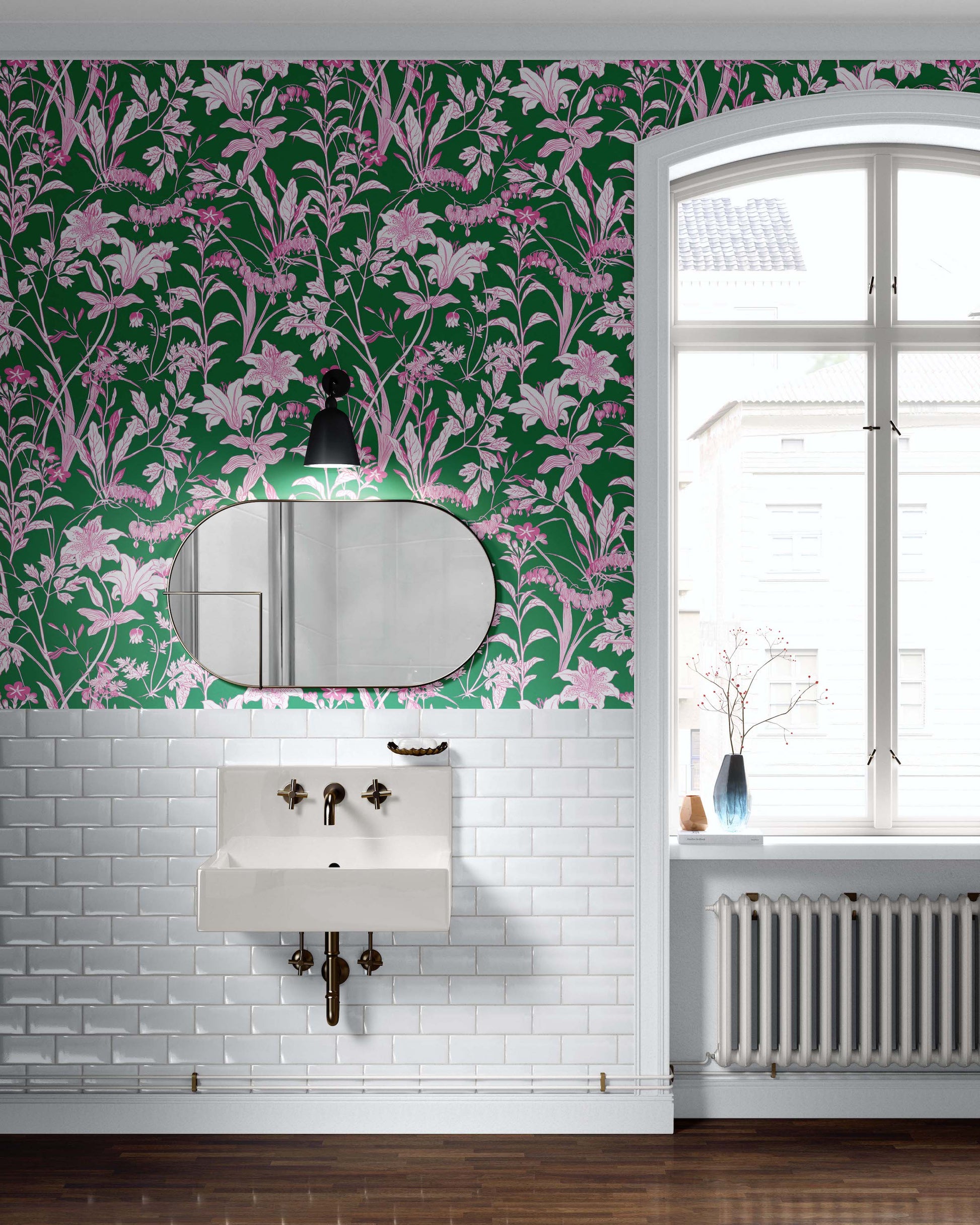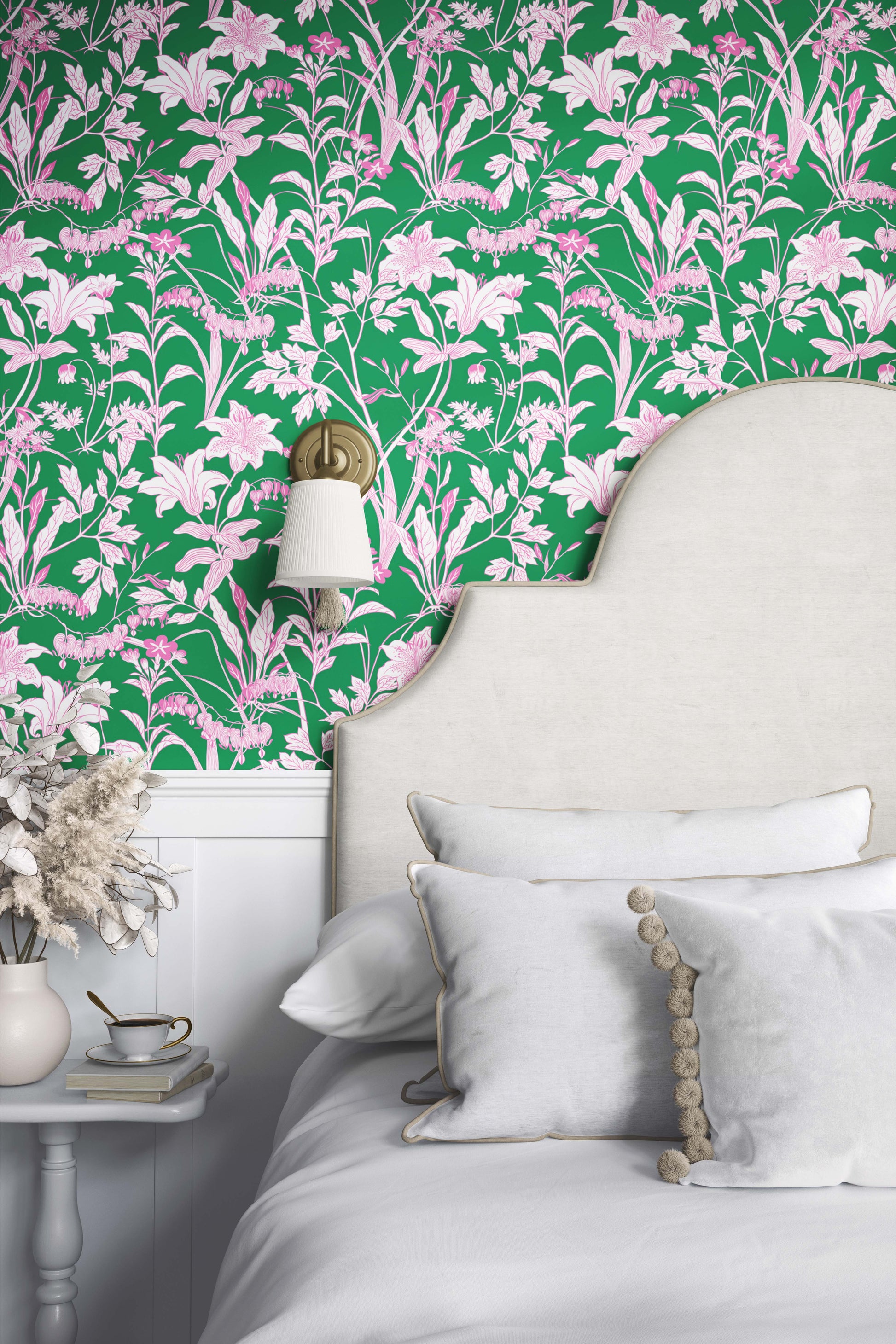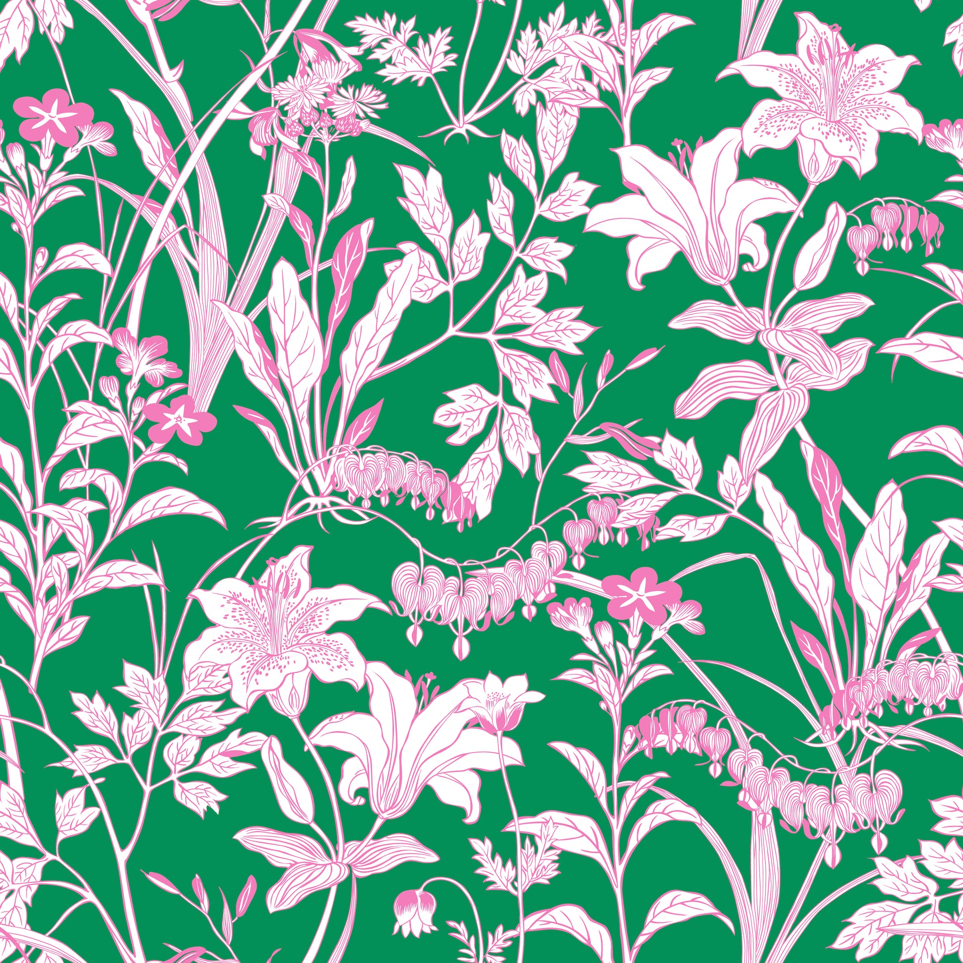 Pattern Description: With trendy hot-pink flowers on a true green background, this is a wallpaper for any room. Wallpaper is one of the most effective ways to revitalize a room without a major commitment. Elevate your interior with our wallpaper collection, crafted to add texture and style that will leave a lasting impression.