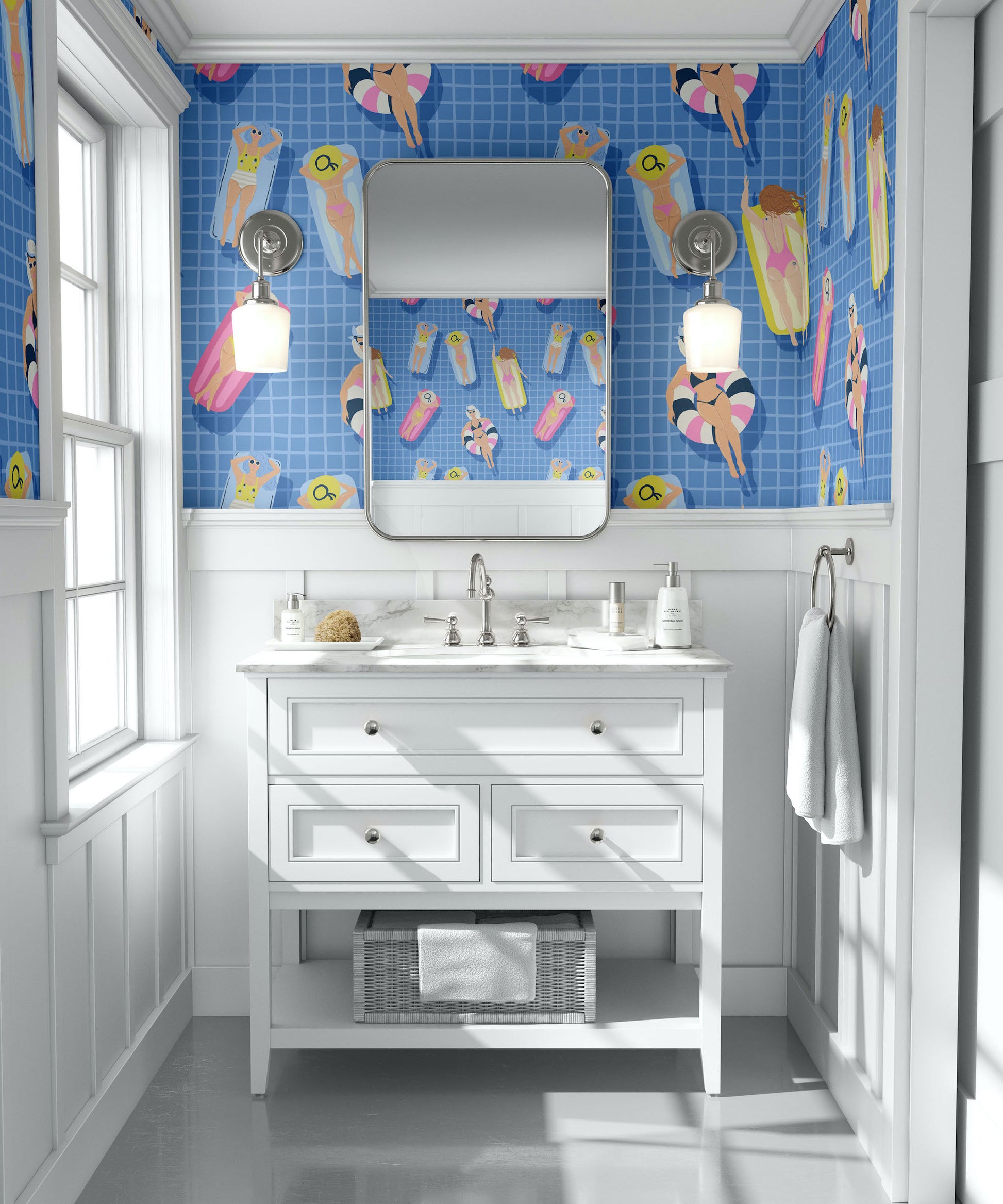 Pattern Description: Who’s ready for a pool day? This vibrant wallpaper showcases bikini-clad girls lounging on floaties, capturing the carefree spirit of a sunny summer afternoon. Imagine transforming the walls of your indoor swimming pool or pool bathroom with this fun and lively design—it’s sure to create an inviting and joyful atmosphere! Wallpaper is one of the most effective ways to revitalize a room without a major commitment. Elevate your interior with our wallpaper collection, crafted to add texture and style that will leave a lasting impression.
